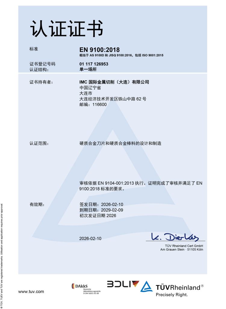 质量IMC大连经认证为全球航空航天组件的制造商及服务提供商。IMC (大连)荣获质量管理体系AS9100认证 – 由国际标准组织设立针对于航空航天制造及服务业的高标准认证。AS9100认证是目前全球航空航天业内唯一认可的专业认证,该认证要求产品质量及服务水平要达到极高水平的稳定性及可靠性。IMC (大连)依靠先进的生产技术及完善的生产管理体系达到了该认证的严格要求。